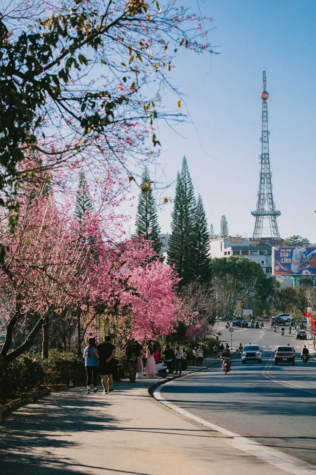 Dọc hai bên đường Trần Hưng Đạo là hàng loạt cây mai anh đào được trồng xen kẽ, mỗi mùa hoa nở lại nhuộm hồng cả con phố. Không chỉ có hoa, nơi đây còn nổi bật với những căn biệt thự cổ mang kiến trúc Pháp, tạo nên khung cảnh lãng mạn, cổ điển như trong những thước phim châu Âu.
