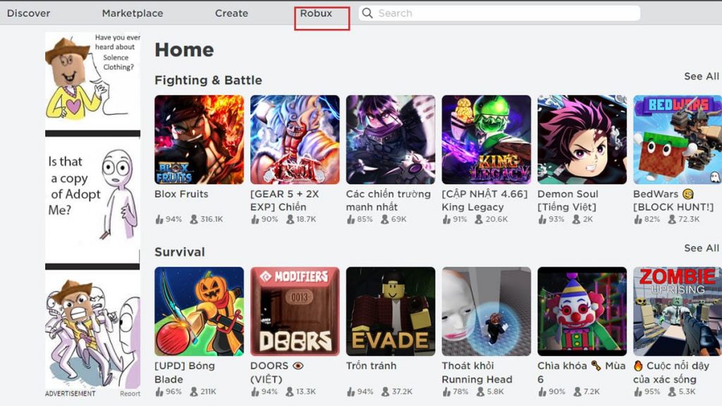 Bước 2: Tìm game Roblox VN