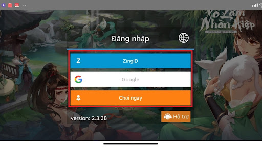 Bước 1: Đầu tiên mở trò chơi > đăng nhập vào game bằng tải khoản ZingID, Google hoặc nhấp vào “chơi ngay”.
