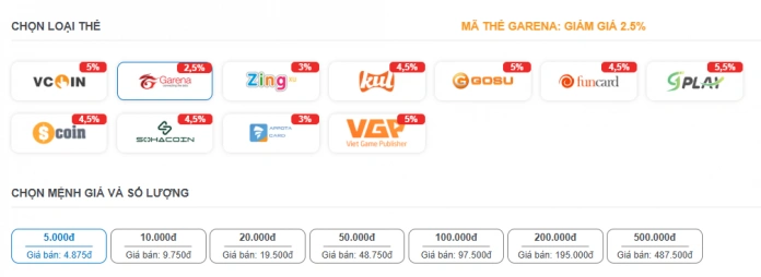1.2. Cách mua thẻ Garena nạp sò chiết khấu cao