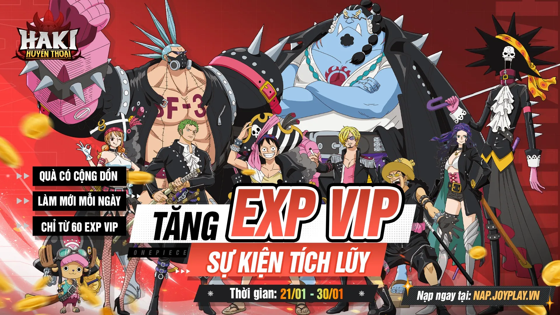 Sự xuất hiện của cặp đôi UR Ace & Yamato đã làm thay đổi hoàn toàn meta hiện tại của Haki Huyền Thoại. Để hỗ trợ người chơi sở hữu và nâng cấp bộ đôi này, sự kiện Tích Lũy Nạp từ ngày 14/01 đến 20/01 đã được triển khai với lộ trình nhận quà vào ngày 21/01.