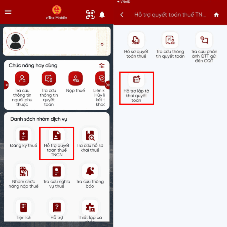 Cách 2: Quyết toán qua ứng dụng eTax Mobile