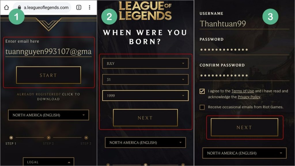 Tạo tài khoản Riot NA trên điện thoại