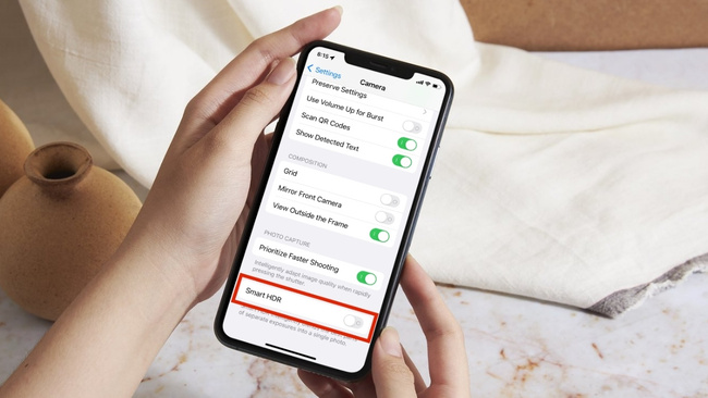 Smart HDR là công cụ giúp iPhone tự động phân tích cảnh và áp dụng hiệu ứng HDR để cân bằng sáng tối mà không cần người dùng chỉnh tay. Tuy nhiên, đôi khi chế độ này khiến ảnh trông “ảo” quá mức và kém tự nhiên. Nếu muốn tắt, bạn thực hiện như sau: