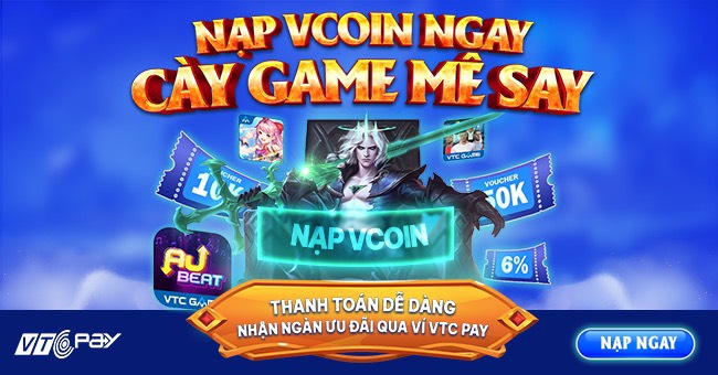 Lưu ý: Khi nạp Vcoin qua ví điện tử VTC Pay, các game thủ sẽ có cơ hội nhận ưu đãi lên đến 5% giá trị thẻ bất kỳ.