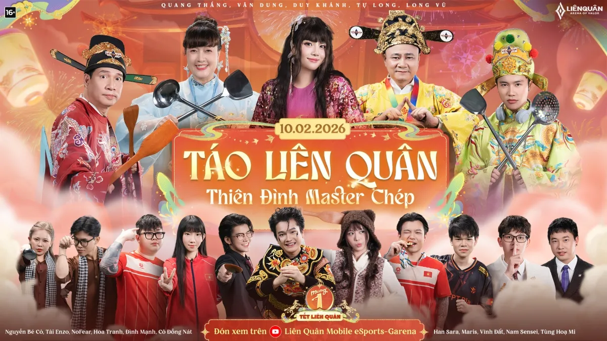 Để gần gũi hơn với khán giả trẻ, Táo Liên Quân 2026 quy tụ dàn khách mời “triệu view”: Long Vũ, Duy Khánh, ZhouZhou, Cô Đồng Nát, Han Sara, Nguyễn Đình Mạnh… Họ chính là những người mang hơi thở hiện đại, các meme mới nhất và ngôn ngữ Gen Z vào buổi chầu.