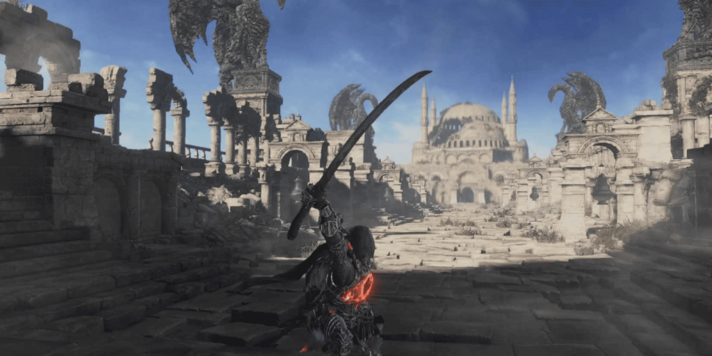 - Baptismal Guard Blade: Greatsword đẹp mắt, với khả năng mở rộng chỉ số sát thương (scaling) sang cả Strength, Dexterity, Intelligence và Faith, lý tưởng cho người chơi muốn cân bằng nhiều chỉ số.