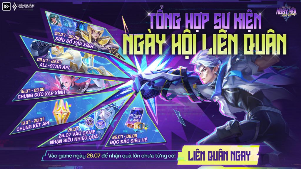 Ngày Hội Liên Quân – Hè Xập Xình, Quà Sập Sàn 2025 là chuỗi sự kiện không thể bỏ qua với hàng loạt phần thưởng giá trị. Hãy tham gia ngay bằng cách hoàn thành nhiệm vụ, xem livestream APL 2025, và theo dõi VTC Pay Blog để không bỏ lỡ bất kỳ thông tin hữu ích nào. Cùng chinh phục mọi thử thách và tận hưởng mùa hè sôi động cùng sự kiện Liên Quân Mobile!