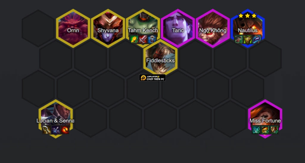 - Cuối game: Ngay khi mở khóa Tahm Kench, hãy thực hiện bước chuyển đổi (Pivot) táo bạo: Bán hết các tướng Bilgewater rẻ tiền (trừ Nautilus 3 sao) và thay thế bằng các tướng 4-5 vàng (Lucian, Shyvana, Ornn). Tahm Kench sẽ gánh sát thương, còn dàn 5 vàng sẽ lo phần còn lại.