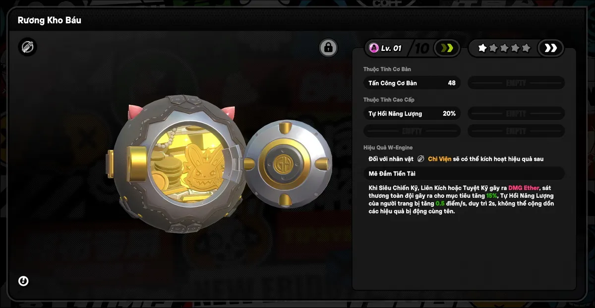 - W-Engine nâng lên mức tối đa có thể theo cấp nhân vật.