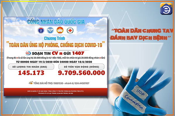 Bộ Thông tin và truyền thông đã đề nghị các doanh nghiệp viễn thông thực hiện nhắn tin đến các thuê bao di động theo nội dung "BO TTTT, BO Y TE, UBTW MTTQVN, HOI CHU THAP ĐO VN vận động đóng góp ủng hộ phòng, chống dịch bệnh COVID-19. Quý vị ủng hộ, hãy soạn: CV n gửi 1407 (Trong đó, n là số lần ủng hộ 20.000 đồng). Mỗi tin nhắn quý vị đóng góp 20.000 đồng nhân n lần (trong đó n giới hạn từ 1 đến 100). Điện thoại hỗ trợ: 19001530. Website:1400.vn. Trân trọng cảm ơn".