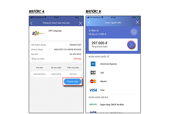 Bước 4: Kiểm tra thông tin háo đơn cần thanh toán => chọn “Thanh toán”