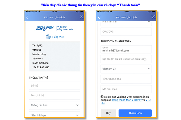 - Điền các thông tin trên thẻ quốc tế để tiến hành bước mua tiếp theo, các thông tin bao gồm: