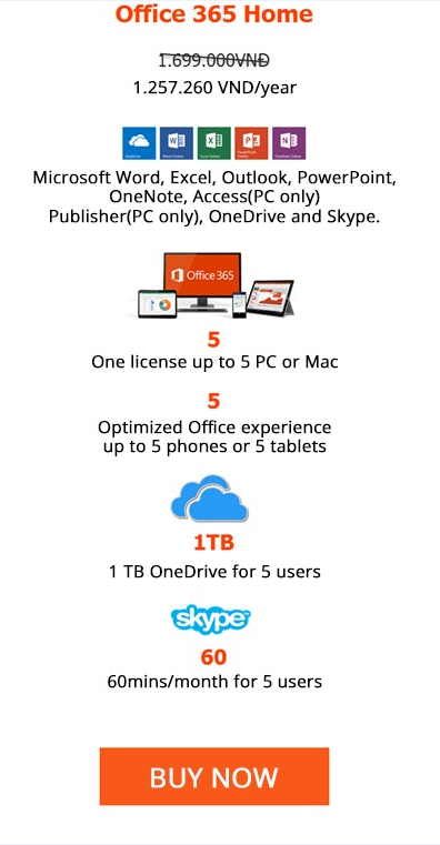 This is a packs of office tools, which included Microsoft Word, Office, Excel,… When users purchased this pack, they will have a right to use these tools with fully supporting, always updated and you can use full capabilities that Office365 has.