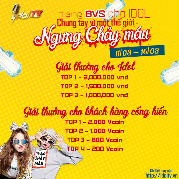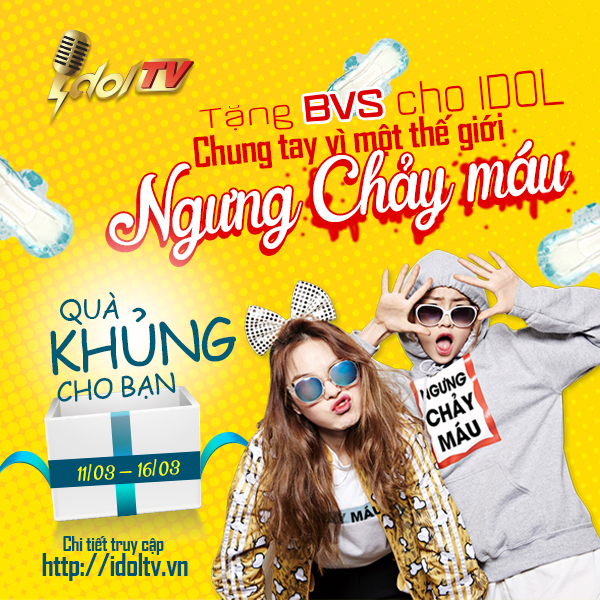 Nào, giờ thì lên cót và bắt đầu cuộc đua tặng BVS cho gái xinh – chung tay vì một thế giới NGƯNG CHẢY MÁU ngay thôi! Sự kiện sẽ được diễn ra từ ngày 11/03 đến ngày 16/03 nhé!