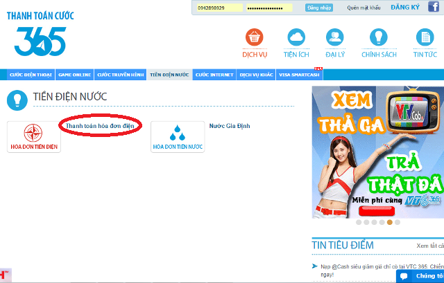 VTC 365 đã sớm có dịch vụ thanh toán tiền điện để phục vụ khách hàng tốt nhất