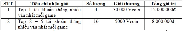 - Event sẽ trao thưởng cho những khách hàng thắng nhiều ván nhất trong mỗi game