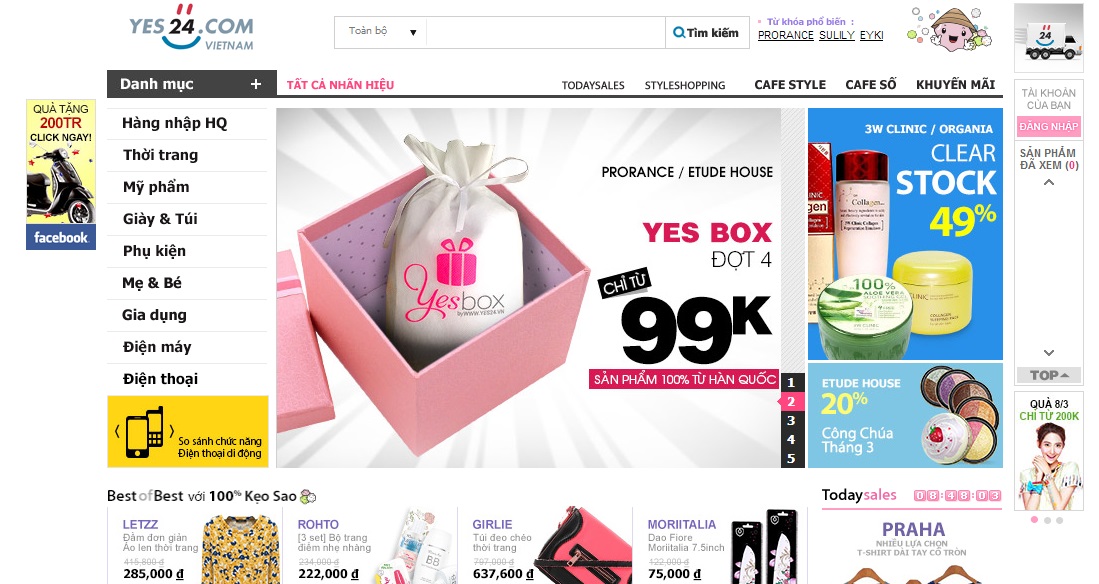 Yes24 – Website mua sắm với tất cả các sản phẩm quần áo, giày dép, túi xách, mỹ phẩm, phụ kiện ấn tượng, gia dụng, điện máy…từ Hàn Quốc.