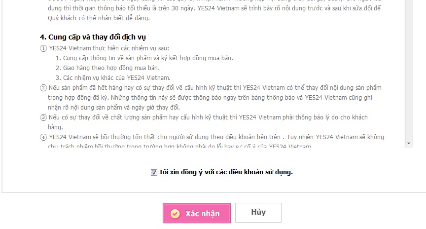 Bước 4: Tick vào mục " Tôi đồng ý với các điều khoản sử dụng" và bấm " Xác nhận"