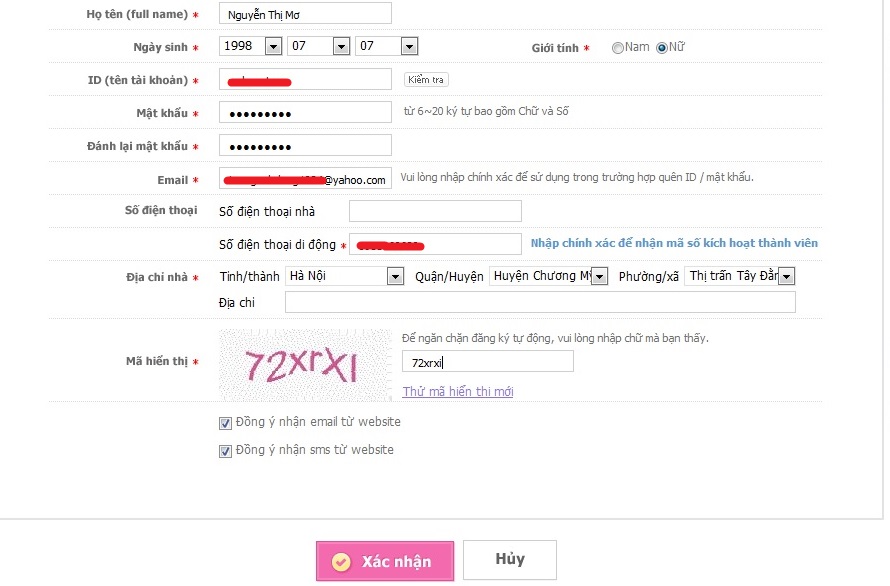 Bước 5: Bạn vui lòng điền đầy thông tin, tên tài khoản id, email, số điện thoại và địa chỉ, sau đó bấm “ Xác nhận “