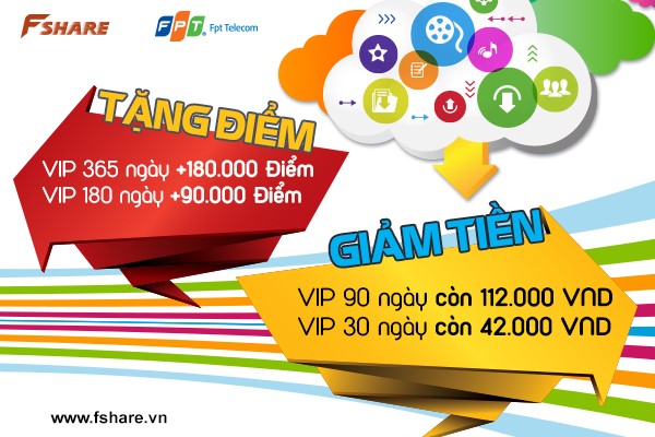Với Điểm thưởng Fshare, Khách hàng có thể dùng để mua ngày VIP (1000 Điểm = 01 ngày VIP) hoặc cho tặng người thân, bạn bè và đối tác một cách dễ dàng.