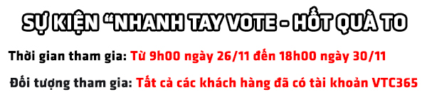 + Giải thưởng 100.000 VND sẽ được trao cho 5 người may mắntrúng giải mỗi ngày từ 26/11 đến 30/11 vào Tài khoản VTC365.