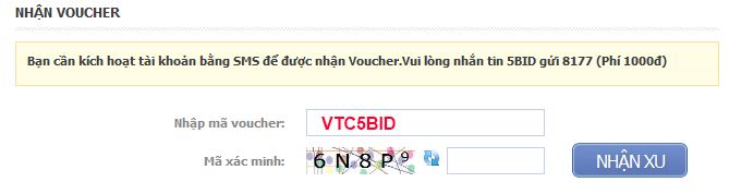 Bước 2: Xác nhận tài khoản qua tin nhắn SMS với cú pháp: 5Bid gửi về 8177 ( 1000 đ/SMS). Sau khi kích hoạt bạn nhận được số xu trị giá 50,000 đ trong tài khoản.