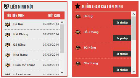 Các Clan có thể tham gia vào các Liên Minh tại khu vực hoạt động của mình