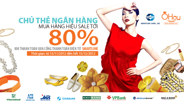 Giảm giá 10% khi mua hàng hiệu trên OHay.vn” khi thanh toán từ các ngân hàng qua Cổng thanh toán trực tuyến Smartlink cụ thể như sau: