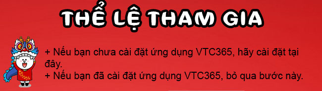 + Chỉ những khách hàng THAM GIA SỰ KIỆN QUA ỨNG DỤNG VTC365 mới đủ ĐIỀU KIỆN THAM GIA SỰ KIỆN.