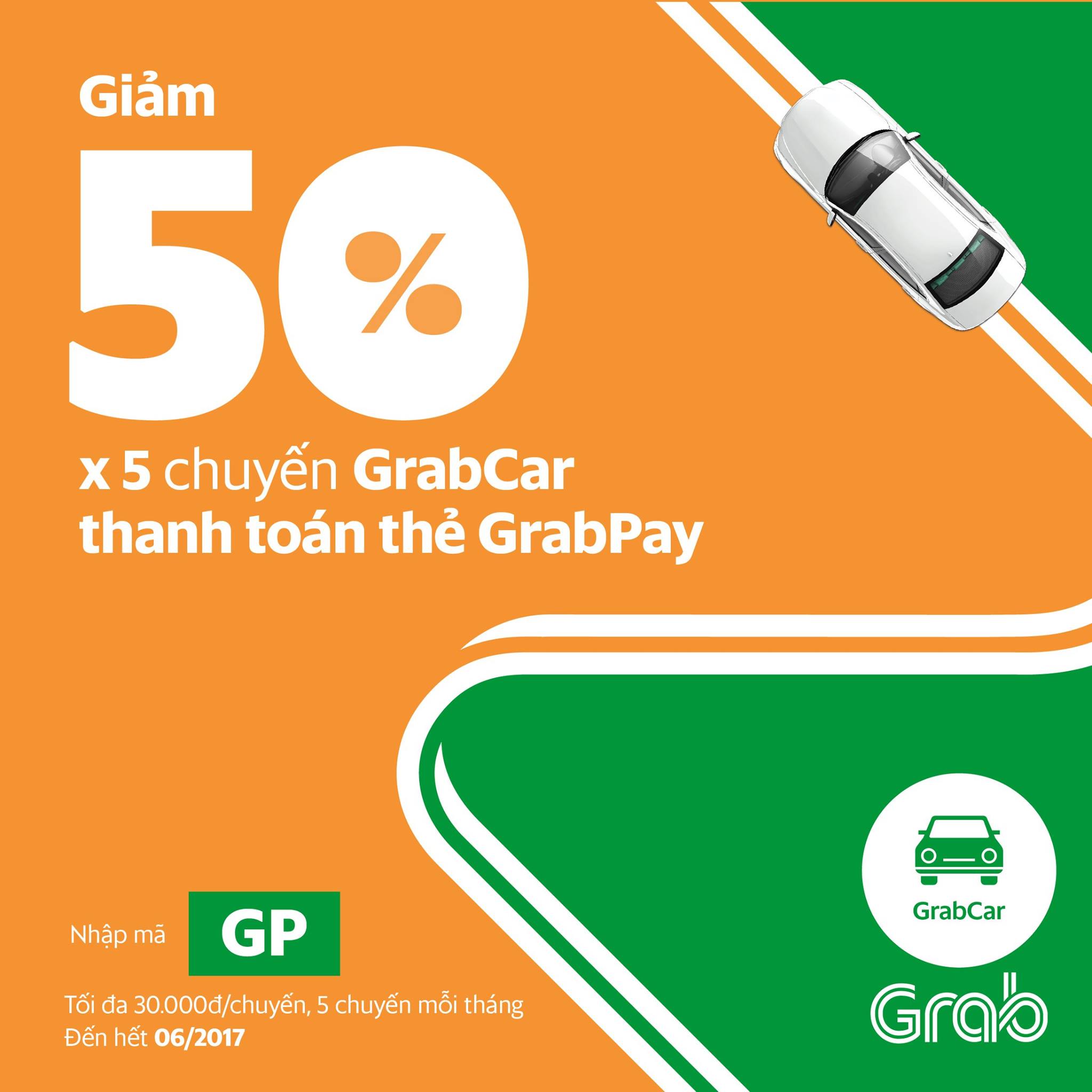 | | - Nhập mã GP khi đi GrabCar và thanh toán bằng thẻ (GrabPay), bạn được giảm giá 50% (tối đa 30.000đ/chuyến)