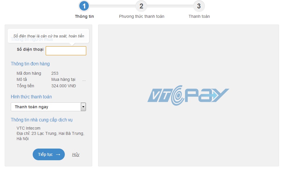 Cổng thanh toán – Ví điện tử VTC PayHỗ trợ khách hàng 24/7Hotline: 1900 1530 Email: Hotro.pay@vtc.vn