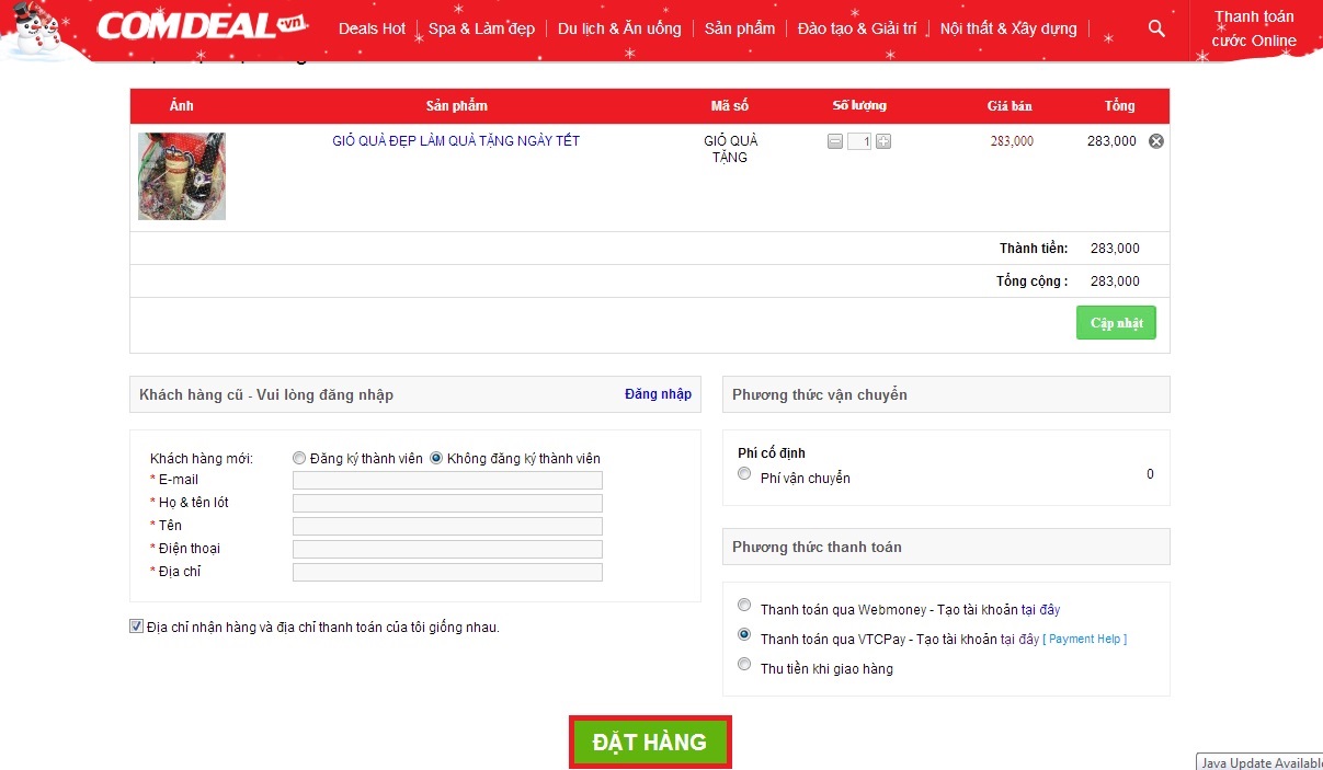 http://comdeal.vn/, lựa chọn sản phẩm bạn muốn mua. Sau đó bạn có thể lựa chọn hình thức