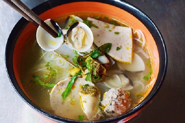 Hủ tiếu ốc: Hủ tiếu ốc là biến tấu mới cho những ai thích hủ tiếu. Một tô nóng hổi gồm hủ tiếu dai, ốc khế, nghêu, sò lông được luộc chín trước, vài miếng chả và viên mộc thả trong ước lèo ngọt thanh. Một tô giá 30.000 đồng. Quán ăn có không gian nhỏ nhưng dễ tìm vì nằm ngay trung tâm chợ Hồ Thị Kỷ, mở cửa từ 3h chiều đến tối.
