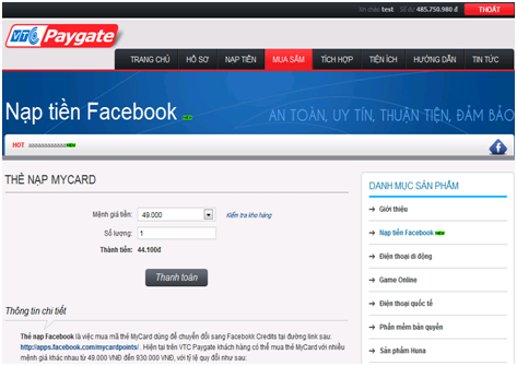 I. MUA THẺ MYCARD POINTS TRÊN HỆ THỐNG VTC PAYGATE