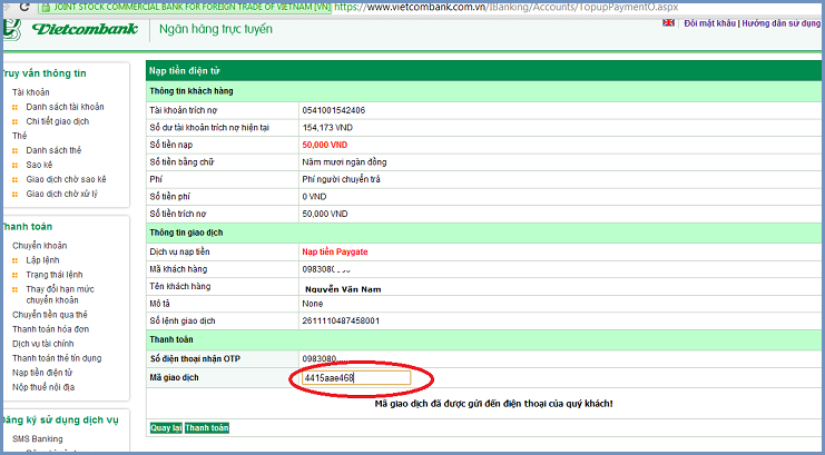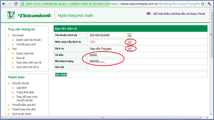 - Mã khách hàng: Là số tài khoản VTC Pay,