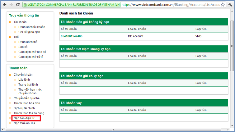 Bước 2: Chọn “Nạp tiền điện tử” trong mục Thanh toán
