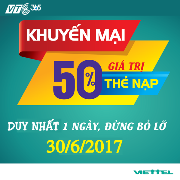 + Tặng 50% giá trị thẻ nạp vào tài khoản khuyến mại (TK10).