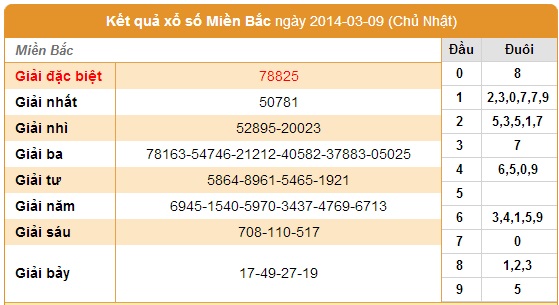 Kết quả xổ số kiến thiết Miền Bắc ngày 09/03/2014