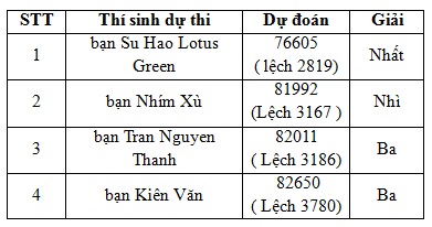 Dựa vào kết quả xổ số kiến thiết miền Bắc, BTC đã tìm ra được những chủ nhân may mắn nhất của giải thưởng lần này, với 5 số cuối dự đoán gần giống với kết quả và comment sớm nhất.