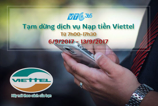 gián đoạn các giao dịch nạp Viettel trên hệ thống VTC365 vào ban ngày. Quý khách hàng có thể nạp Viettel trên hệ thống VTC365 bình thường từ 17h31 - 6h59 sáng hôm sau trong khoảng thời gian trên.
