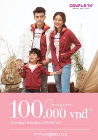 COUPLE TX Tặng 100.000đ cho hóa đơn từ 500.000đ Điều kiện áp dụng: - Thời hạn sử dụng: 02 tháng kể từ ngày 25/05/2018 - Không có giá trị cộng gộp hay quy đổi thành tiền mặt. - Không áp dụng đồng thời với chính sách thành viên và chương trình khuyến mãi khác. - Coupon rách, chắp vá hoặc bị sao chép có thể bị từ chối sử dụng. - Áp dụng tại hệ thống cửa hàng Couple TX. |