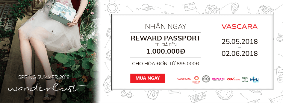 Đặc biệt, bắt đầu từ hôm nay cho tới hết 2/6/2018, Vascara tặng riêng các nàng ưu đãi tặng Reward Passport trị giá tới 1.000.000đ, sử dụng cho các thương hiệu thời trang, làm đẹp, ẩm thực, giải trí và du lịch như: Couple TX, TheFaceShop, CGV, Tous Les Jours, Red Sun, iViVu... Chi tiết mời các nàng xem bên dưới nhé: