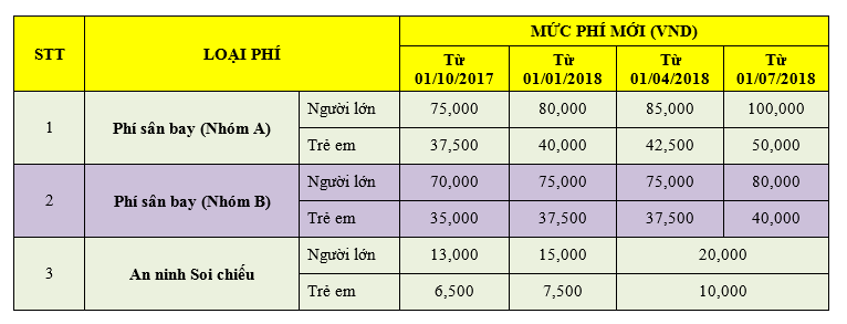 - Áp dụng cho các đặt chỗ và thay đổi kể từ ngày 10/09/2017 có ngày khởi hành kể từ những ngày trong bảng dưới đây: