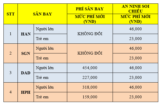 - Sân bay Nhóm A: HAN, DAD, SGN, CXR, HPH, VII, VCA, PQC, DLI, HUI, BMV