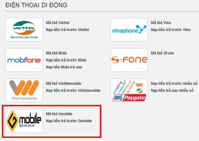 Hình ảnh sản phẩm Gmobile thay thế cho Beeline trên website VTC Paygate