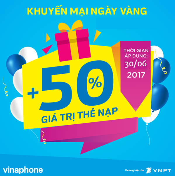 - Tặng 50% giá trị các thẻ nạp trong thời gian khuyến mại, trong đó: 25% giá trị thẻ nạp được tặng cộng vào Tài khoản Khuyến mại (gọi/nhắn tin liên mạng), 25% giá trị thẻ nạp được tặng cộng vào Tài khoản Khuyến mại 2 (gọi/nhắn tin nội mạng Vinaphone và cố định VNPT).