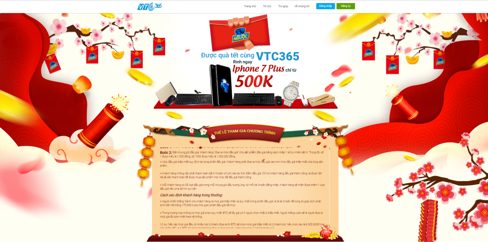 "Đấu giá ngược - Được quà Tết" nằm trong chuỗi sự kiện “Vui Xuân mới – Quà phơi phới cùng VTC Pay” vào dịp Tết Nguyên đán này của VTC Pay. Sự kiện sẽ diễn ra từ ngày 5/2 - 9/2 với tổng giá trị giải thưởng lên đến trên 100 triệu đồng. Tham gia vào sự kiện, khách hàng sẽ có cơ hội nhận ngay iPhone 7Plus chỉ từ 500.000đ cùng nhiều giải thưởng giá trị như đồng hồ đeo tay Citizen, pin sạc dự phòng, chuột máy tính, bàn phím từ 19.000đ.