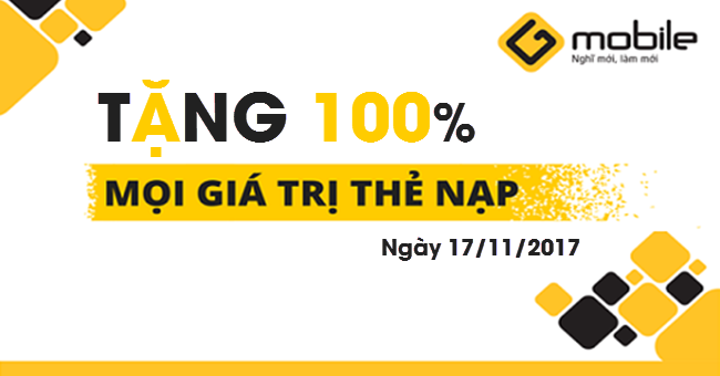 Thứ 6 máu chảy về tim! Hãy sẵn sàng nạp năng lượng cho cuối tuần thật vui với khuyến mãi 100% giá trị thẻ nạp ngày 17/11 đến từ nhà mạng Gmobile! Tặng thêm tới 6,7% khi nạp tiền điện thoại Vietnamobile qua VTC365 nữa! Đừng bỏ lỡ nhé các bạn!