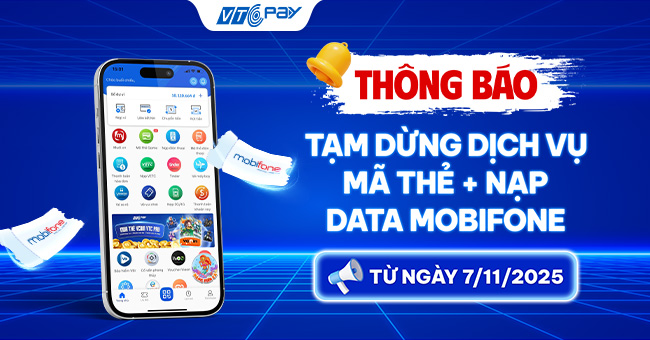 VTC Pay thông báo tạm dừng dịch vụ Mã thẻ và Nạp Data MobiFone từ ngày 7/11/2025